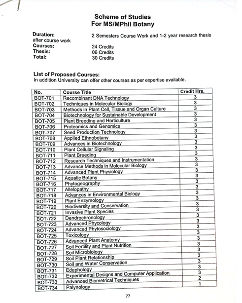 As Department of Botany our mission is to create and disseminate an excellent learning environment Foster research and development in plant sciences. To develop and implement outcome-based education (OBE) framework. Establish research collaborations with national institutions. Establish postgraduate programs (MPhil/PhD). Develop community outreach programs for environmental awareness.