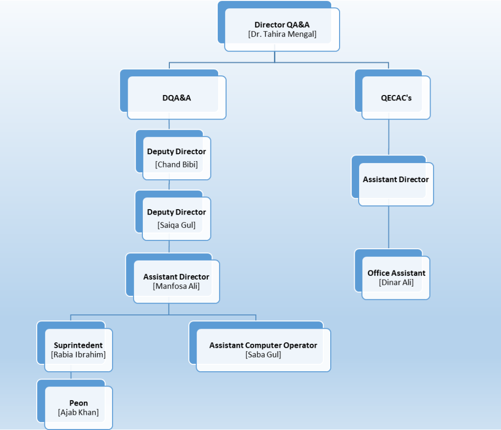 Directorate of Quality Assurance and Accreditation Menu Directorate of QA&A Home Quality Assurance Policy Institutional Quality Circle Activity Calendar QA&A Organizational Chart Focal Persons Detail Downloads Surveys Forms Activities linked Documents Organizational Chart